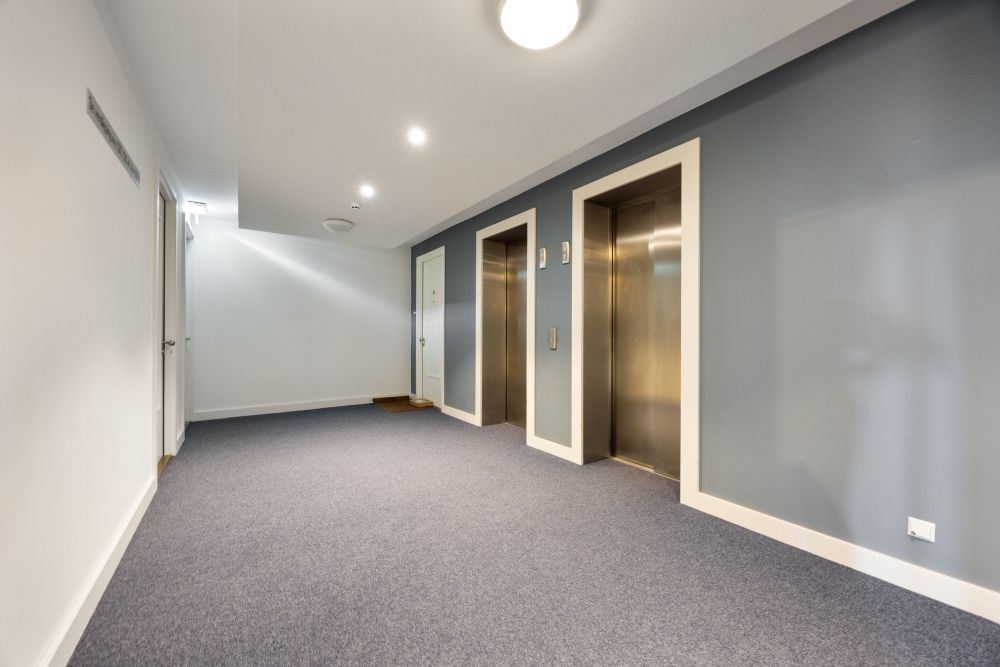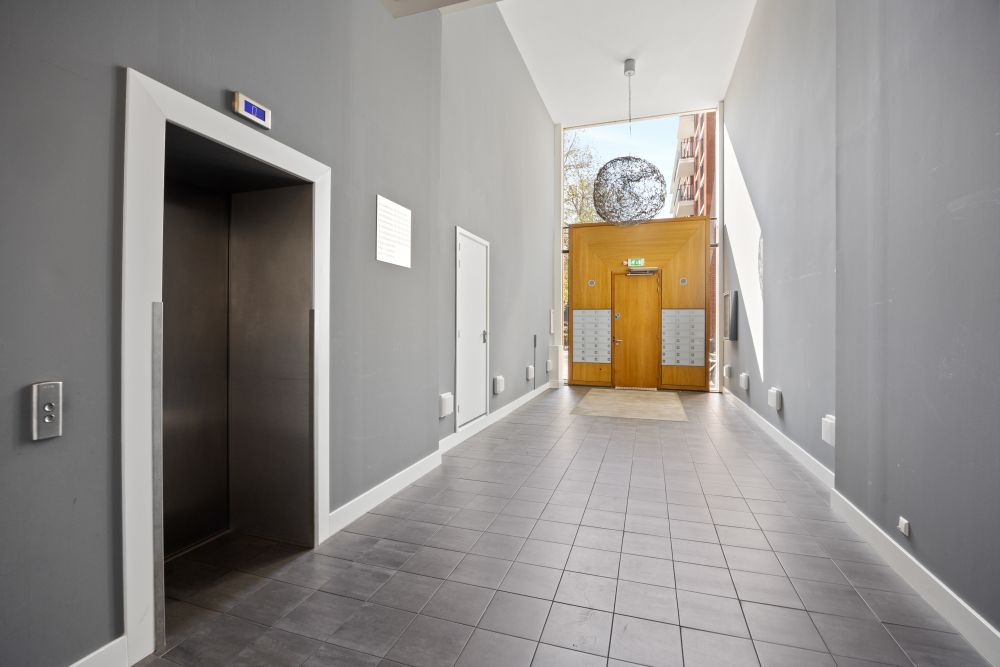 Centrale entree met intercom, grote hal met toegang tot de 2 liften of wil je liever lopen het trappenhuis.