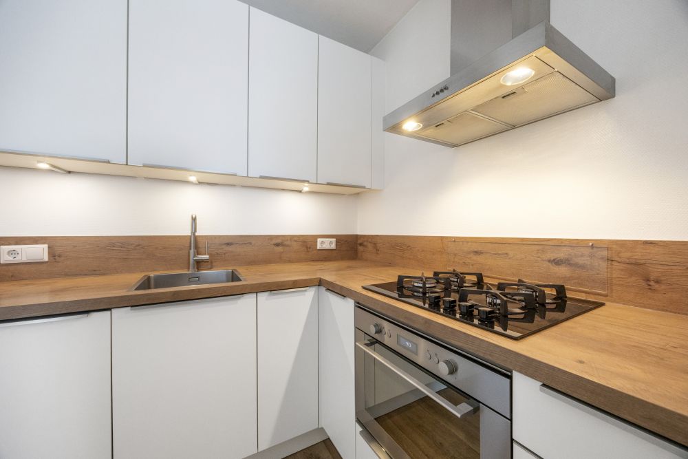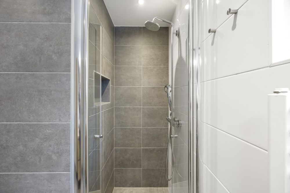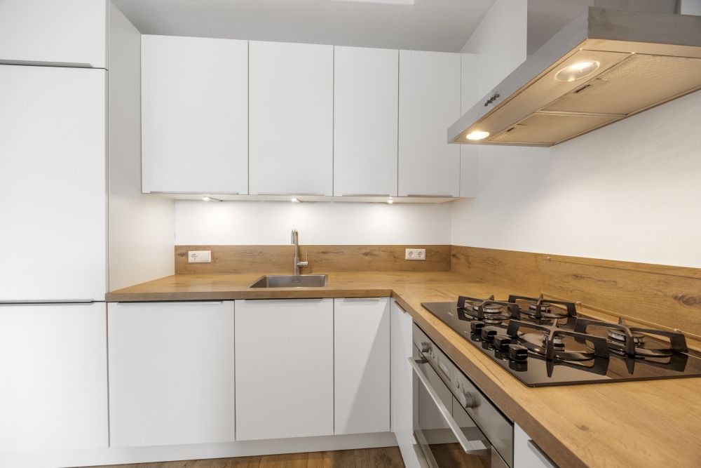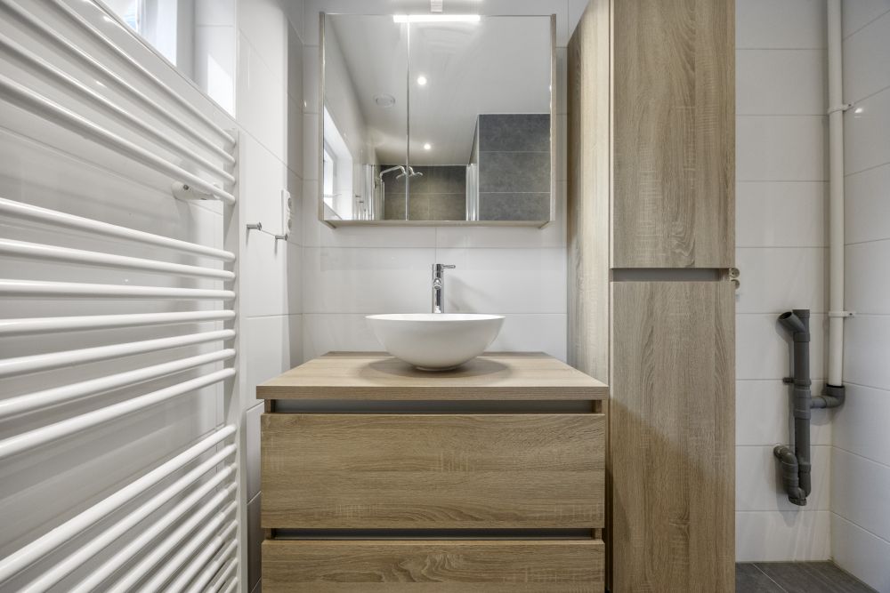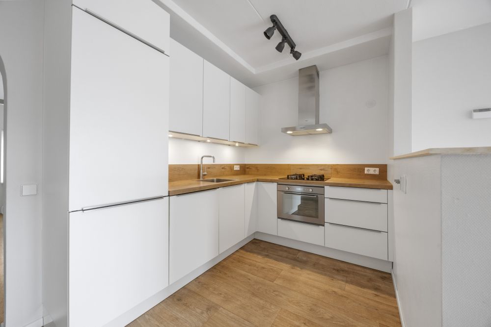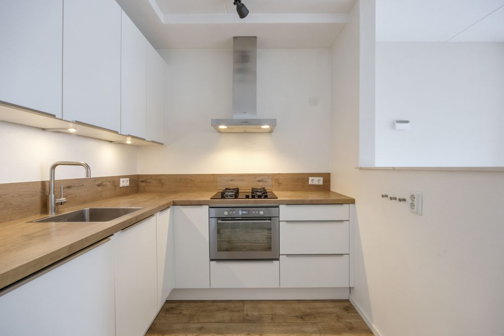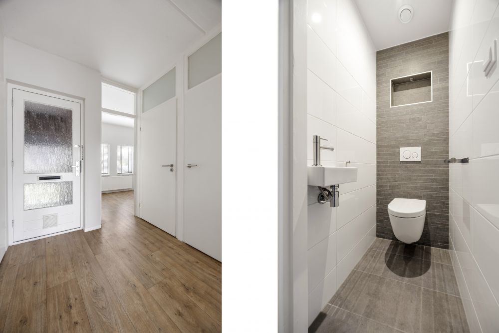 Ruime entree (via gesloten portiek met intercom), meterkast, eerste slaapkamer, apart toilet met fontein, moderne badkamer met vloerverwarming, inloopdouche, wastafel, wastafelmeubel, designradiator en de aansluiting voor de was apparatuur. Treed binnen in de woonkamer en je treft de open keuken voorzien van combimagnetron, 4-pits gaskookplaat, koel-/vriescombinatie en afzuigkap. De woonkamer biedt toegang tot het zonnige terras.