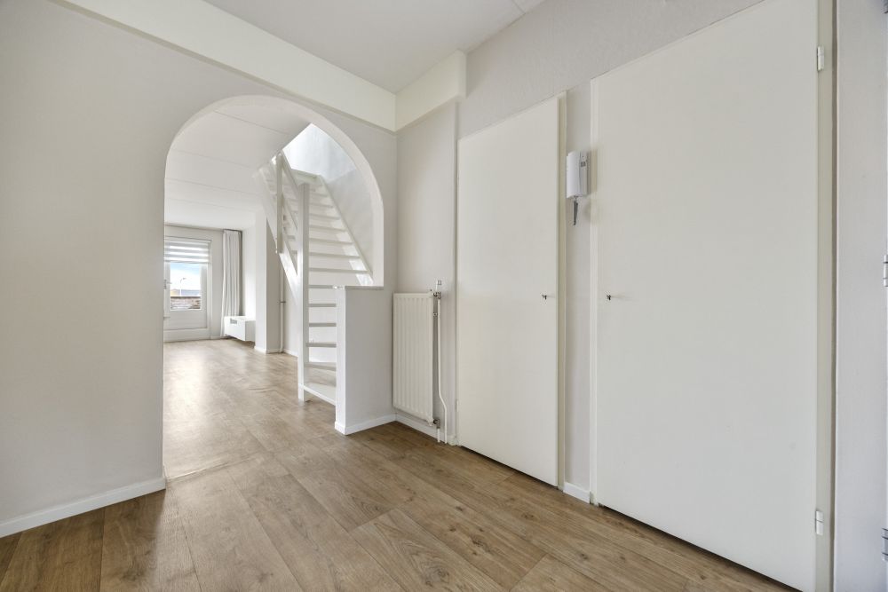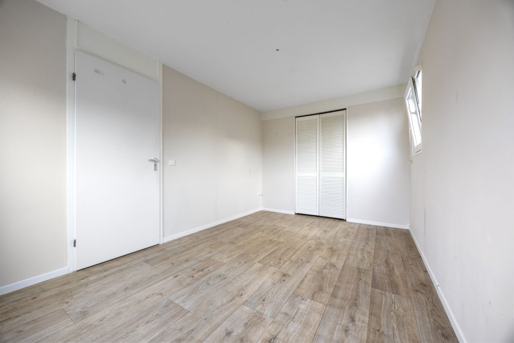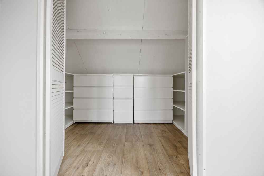 Middels de houten trap in de woonkamer loop je naar de verdieping met de tweede ruime slaapkamer inclusief inloopkast.