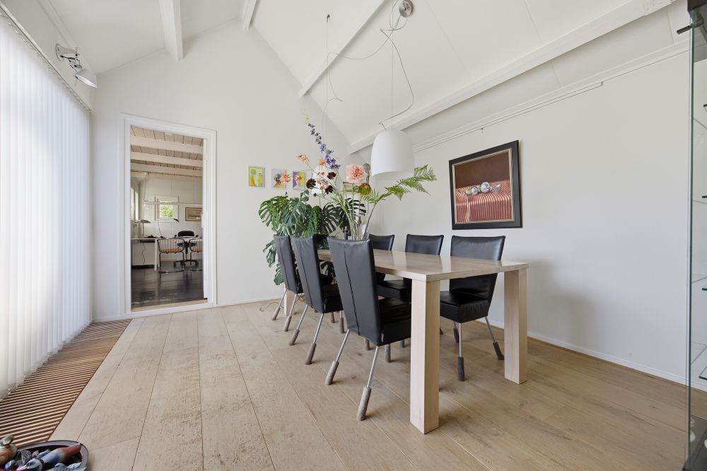Dankzij de smaakvolle aanbouw met eethoek en werkkamer is de oorspronkelijke woning getransformeerd tot een bijzonder geheel waarin comfort, functionaliteit en sfeer samenkomen. De grote glazen puien zorgen voor een naadloze verbinding tussen binnen en buiten, waarbij de op het (zuid)westen gelegen tuin een vanzelfsprekend verlengstuk vormt van het woongedeelte. Hier geniet u volop van rust, privacy en zon — van de eerste lenteochtend tot de laatste zomeravond.