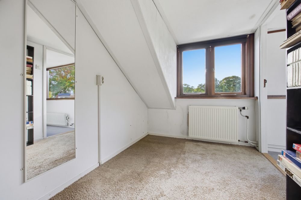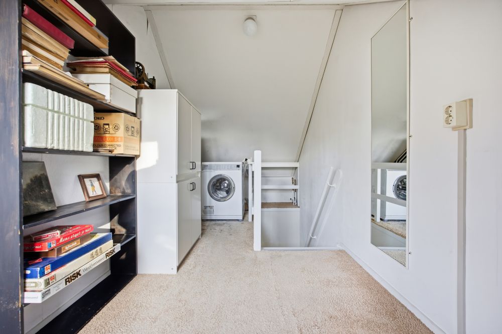 Zolderverdieping: voorzolder met aansluiting voor wasmachine, zolderkamer met dakkapel, wastafel en extra bergruimte.